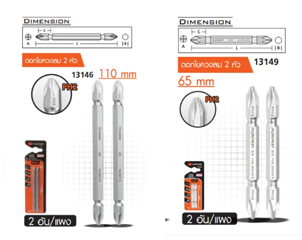 PUMPKIN ดอกไขควงลมโอซาก้า S2 (1 แผง ได้ 2 ดอก) ผลิตจากเหล็กกล้าคุณภาพสูง ขนาด 45-110 มิล