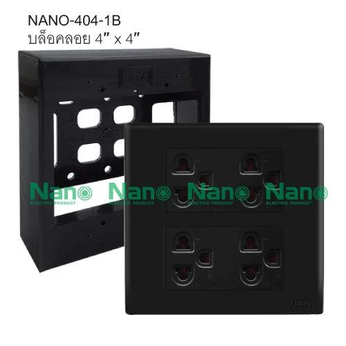 ชุดฝา NANO 6 ช่อง 2 ปลั๊กกราวด์คู่และบล็อกลอยขนาด 4*4นิ้ว สีดำ